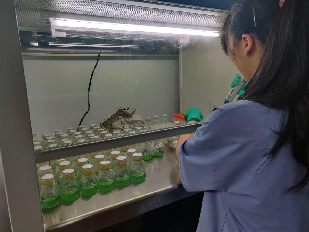 项目介绍:《不同光质对铜绿微囊藻虾青素合成的影响》项目团队首次揭示了紫光为铜绿微囊藻虾青素合成的最适光质,为利用铜绿微囊藻生产虾青素奠定了重要理论基础,并提出用紫光处理水华治理中打捞起的铜绿微囊藻再提取虾青素的设想,从而降低培养成本实现巨大经济收益,同时推动水华藻类的打捞,这对于水华防治又具有潜在的生态效益。该团队将继续致力于把理论转化为实践,促进天然虾青素生产。