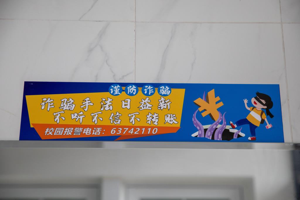 醒目的标语既是即将入学新生的防火墙”,又时刻昭示着党员需带头学习反诈知识,时刻紧绷反诈“弦”,切实将反诈宣传牢记于心、实践于行,带动更多同学识诈、防诈、反诈。