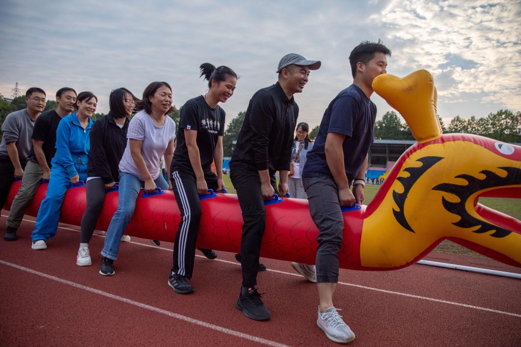 10月12号下午,学院第十四届教职工趣味运动会在A区田径场举办。本次运动会现场共设飞镖投准、毛毛虫竞速、集体跳绳等八个比赛项目,全院教职工现场抽签共分成三组参赛队伍进行角逐。