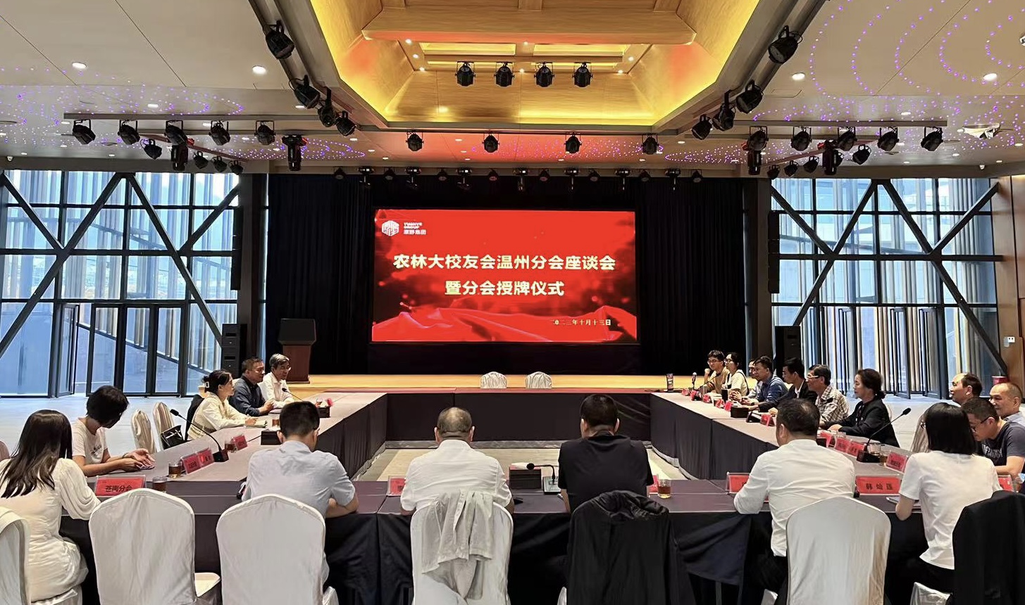 10月13日,学院党委书记郑炳松、校友联络办主任哀建国一行赴温州,与温州优秀校友座谈交流并举行温州各分会授牌仪式。温州市校友会会长潘孝政(温州市人大副主任)、温州市妇联执委宋玲华、原野集团有限公司董事长李星涛以及温州市各区县校友分会代表参加座谈会。