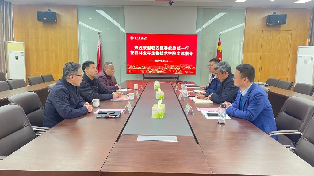 3月14日下午,临安区委统战部副部长、民宗局局长郭胜利一行来学院交流调研。学院党委书记郑炳松会见了郭胜利一行,党委副书记潘军可,学生办相关老师陪同交流调研。